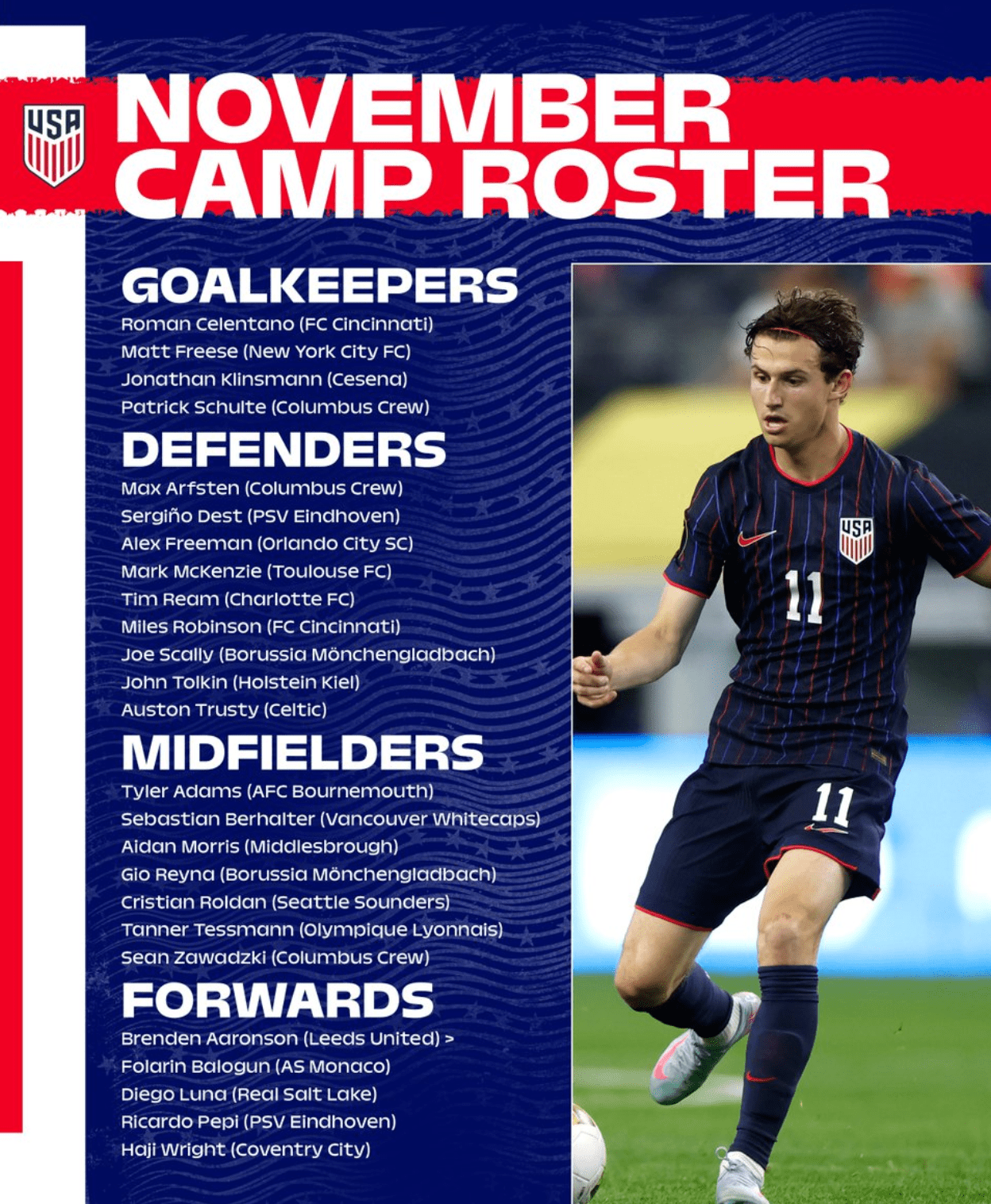 Mauricio Pochettino released the roster for our November International window friendlies against Paraguay on Saturday, November 15th in Philadelphia and Uruguay on Tuesday, November 18th in Tampa Bay.